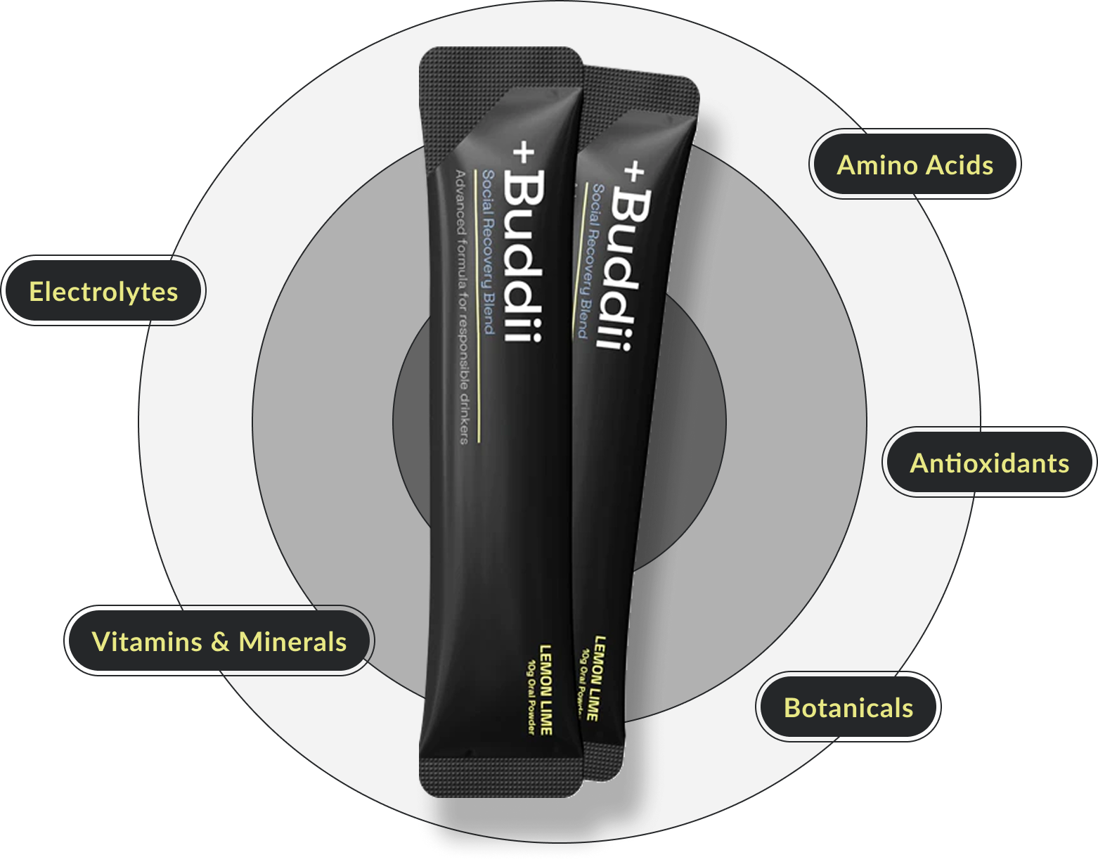 While B vitamins and electrolytes play a well-known role in daily wellbeing, Buddii offers a more rounded blend. We've included a selection of thoughtfully sourced nutrients and botanicals to complement your social lifestyle — from nights out to mornings after. The formulation brings together professional-grade ingredients chosen to support balance, hydration, and mindful self-care, with a focus on quality and synergy.